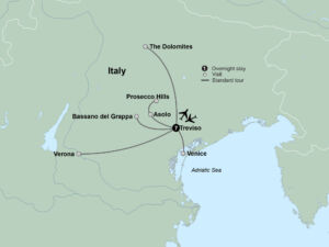 Unpack once and take in the vineyards, villas, peaks, and prosecco of Veneto. Settle into a centrally located hotel in Treviso, the historic mainland outpost for the island-city of Venice. Savor the Venetian inspiration on terrafirma, solid ground, so you have the flexibility to explore on land and by water, with time to dive into Venice, Verona, and the Dolomites. Take in the artist haven of Asolo and get a taste of Italy’s Prosecco region. Immerse yourself in local culture at a historic villa near Bassano del Grappa, retracing the history of a noble family of Venice. This is your opportunity to dive in and truly experience Northern Italy.